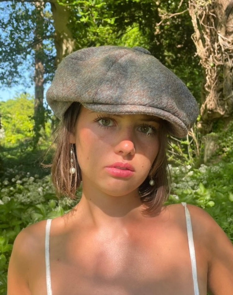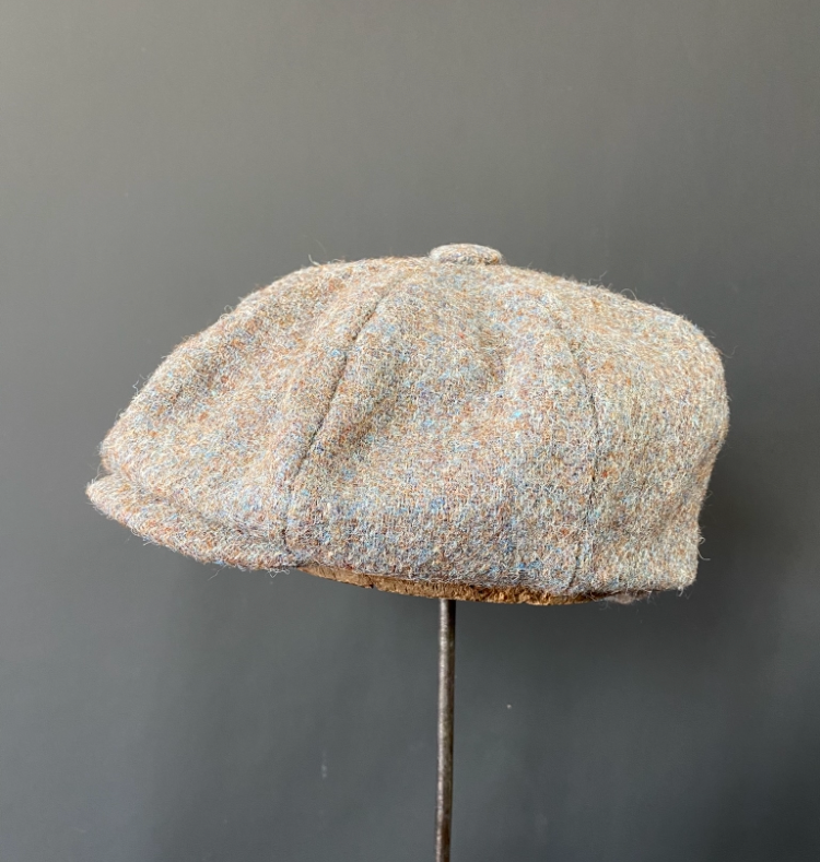The Toddbrook II is another hairy, hardwearing cap in Harris Tweed. In a dense weave - a mix of pale blues, greys, greens and corn muted flecked blues, browns and fawn, it feels as if it would repel the wildest of days. With a stitched-down peak, we found the last few yards of this rare single-width tweed, enough to make just five pieces.
